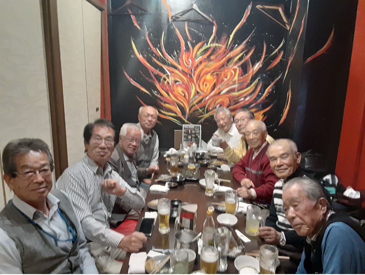 参加者のほとんどが70歳以上となったせいか若干お酒の量が少なくなった様に感じました。最後に昨年11月6日にご逝去された神戸エリアの重鎮であった木方様のご冥福をお祈りをするとともに次回もみんな元気で会うことを約束してお開きにしました。